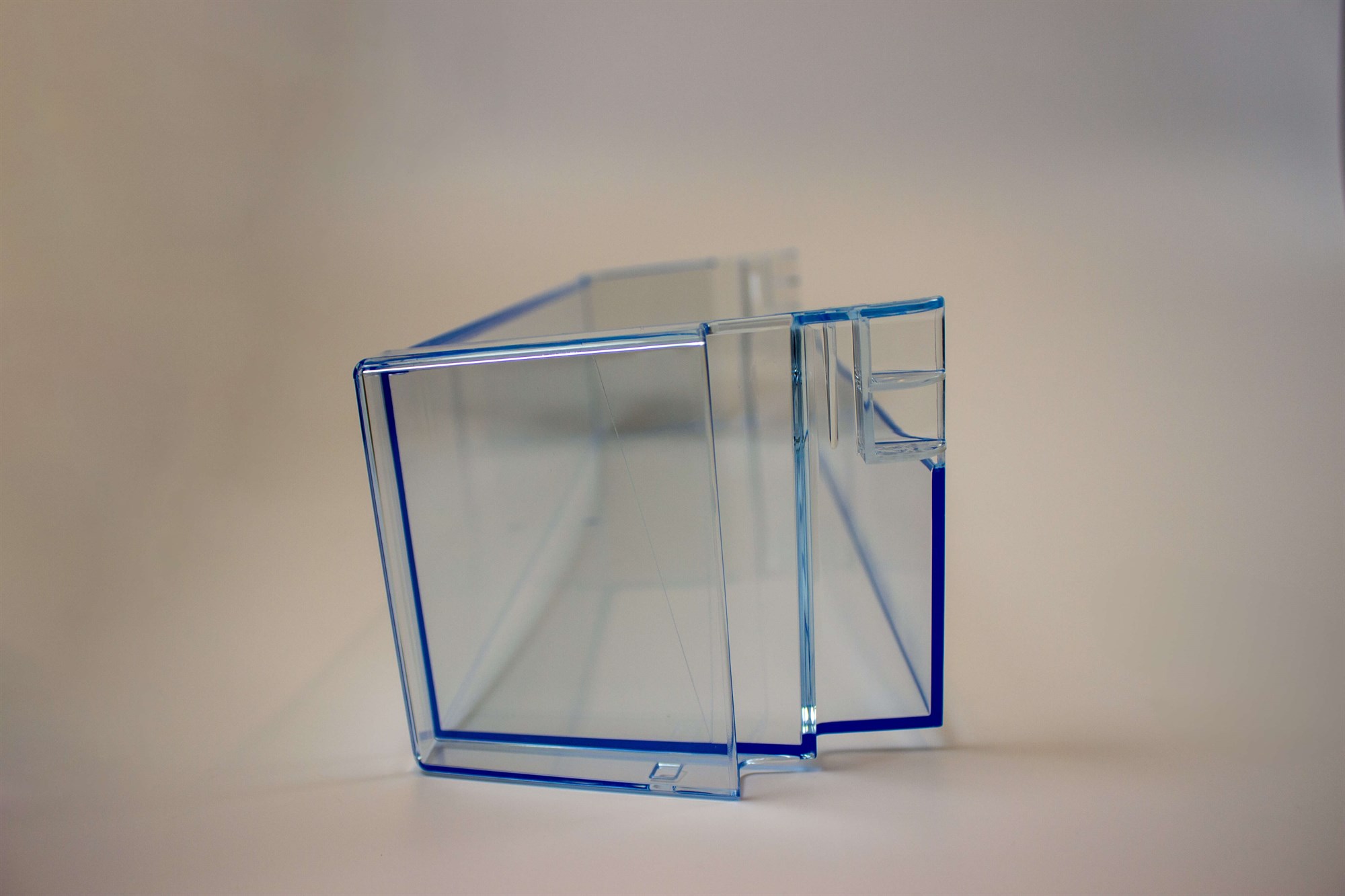 Unteres Regal in der Kühlschranktür, oft als Milchablage genutzt. Das Türregal kann einfach ohne Werkzeug ausgetauscht werden.