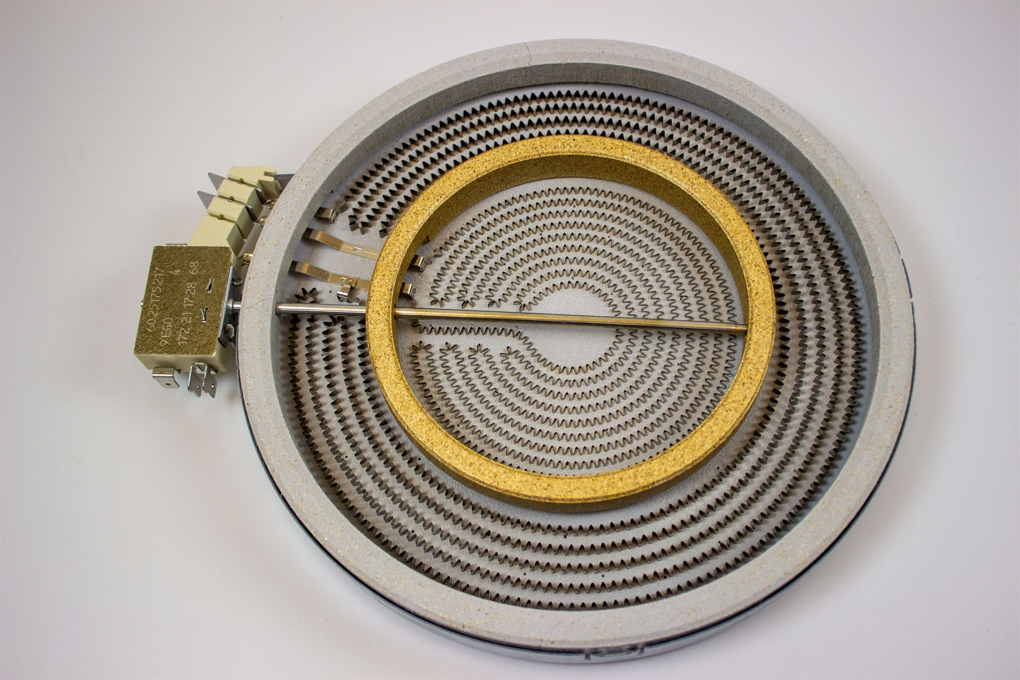Eine Hi-Light-Kochzone für das Balay Keramikkochfeld hat ein Heizelement mit einem Zickzack-Draht, der auf der Isolationsmasse liegt. Diese Konstruktion sorgt für eine schnellere Erwärmung als ältere Kochzonen mit Spiraldraht.